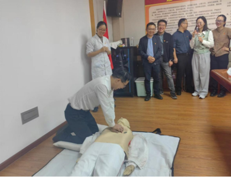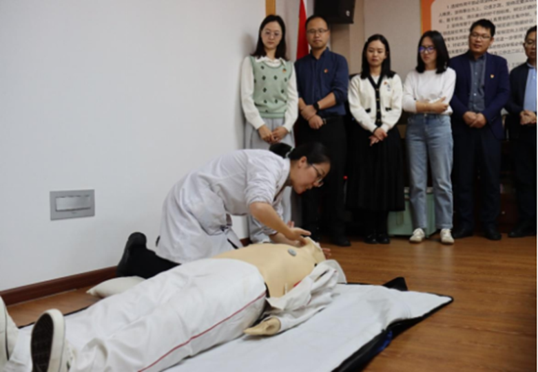 活动分两阶段进行。第一阶段开展急救技能培训。直属单位党委高教中心党支部莫桂芸同志发挥专业特长,对在场人员开展急救知识和技能传授。从知识普及到实际操作指导,详细讲解和示范了心肺复苏和海姆立克法等急救技能。中心党支部在场同志认真听讲,询问细节,实际操作体验。