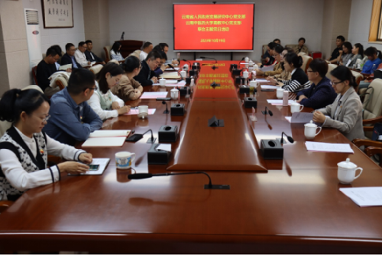 (通讯员 张义花 黎邢亚娜)在学校与省政府发展研究中心签署合作协议前夕,10月19日下午,直属单位党委、高教中心党支部联合针灸推拿康复学院教师党支部,与中心党支部进行支部共建,开展“弘扬中医文化 提升健康素养”中医义诊主题党日活动,送健康送服务上门,交流党建经验的同时为双方下一步深化高水平中医药政策研究合作建立良好基础。