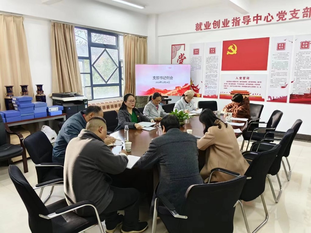 直属单位党委于2023年12月14日上午在和合楼219会议室召开12月支部书记例会。会议以“年终大盘点,启航高质量发展新征程”为主题,就业创业指导中心党支部书记王丽霞主持会议,各支部书记参会。