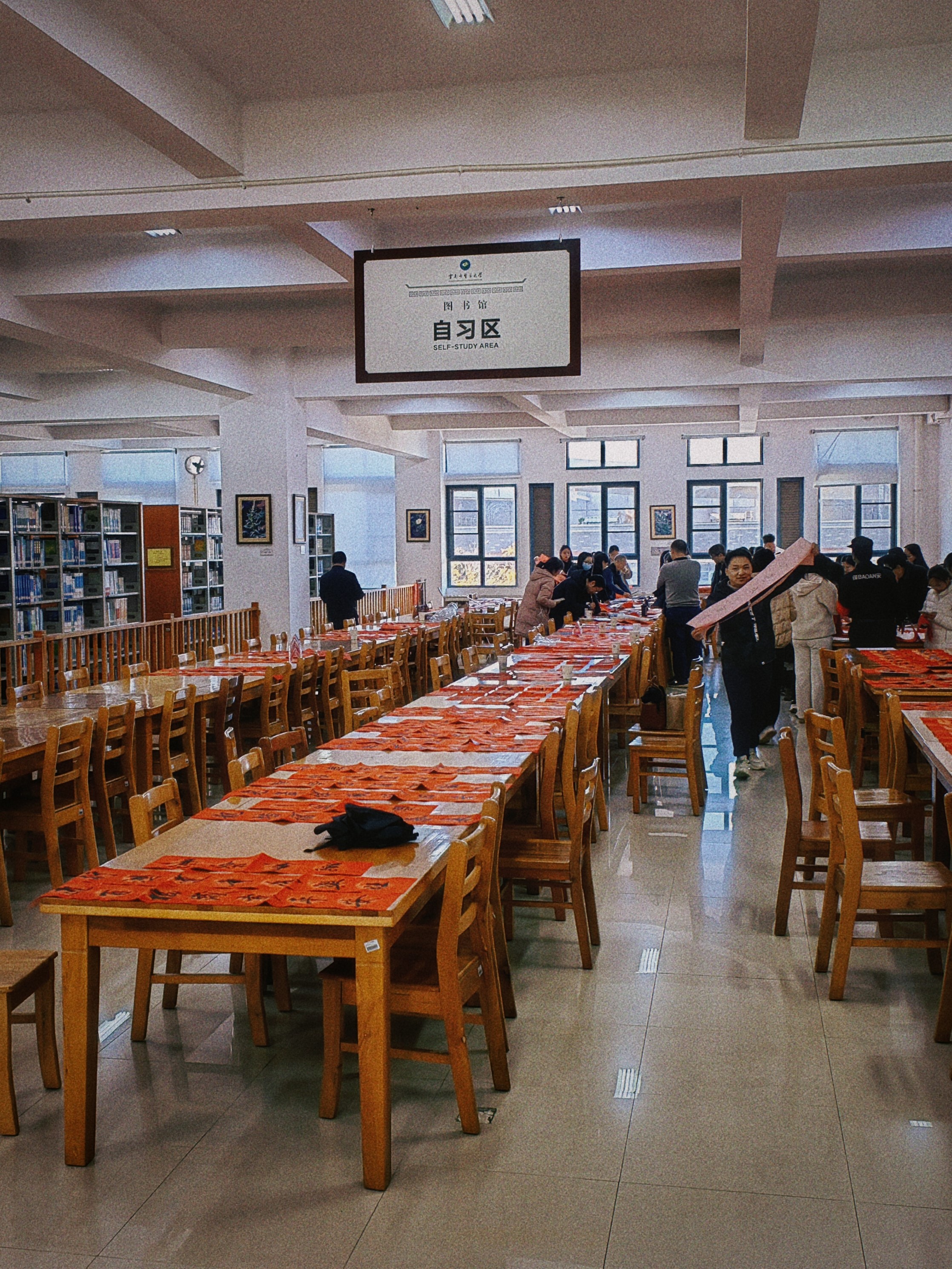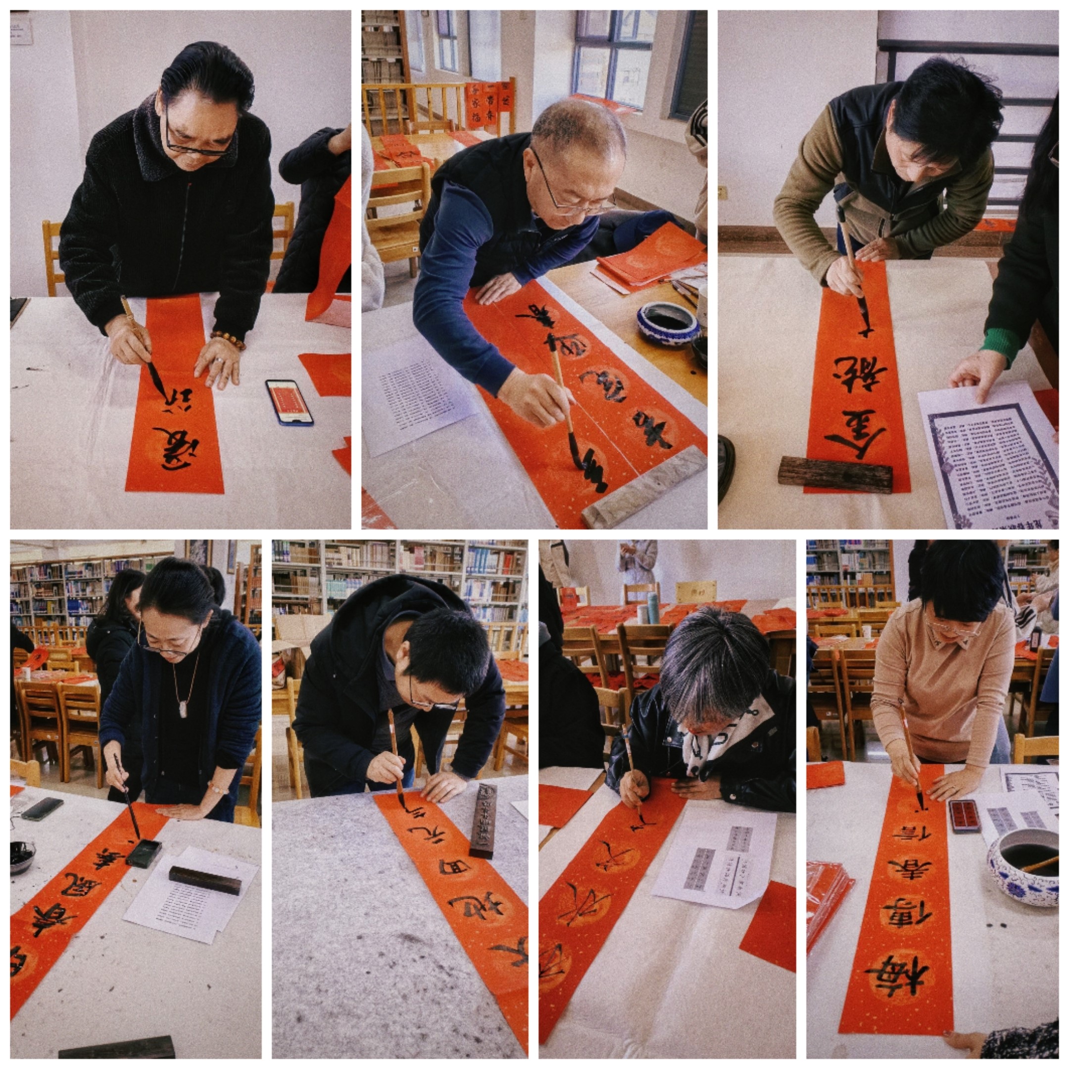 图书馆401借阅室人头攒动,热闹非凡,为求“墨宝”的教职工络绎不绝,纷纷赞叹道:“各位老师的书法字体飘逸,功力深厚,现场制作春联的方式更具参与感,年味十足,充分展现了图书馆的文化氛围”。