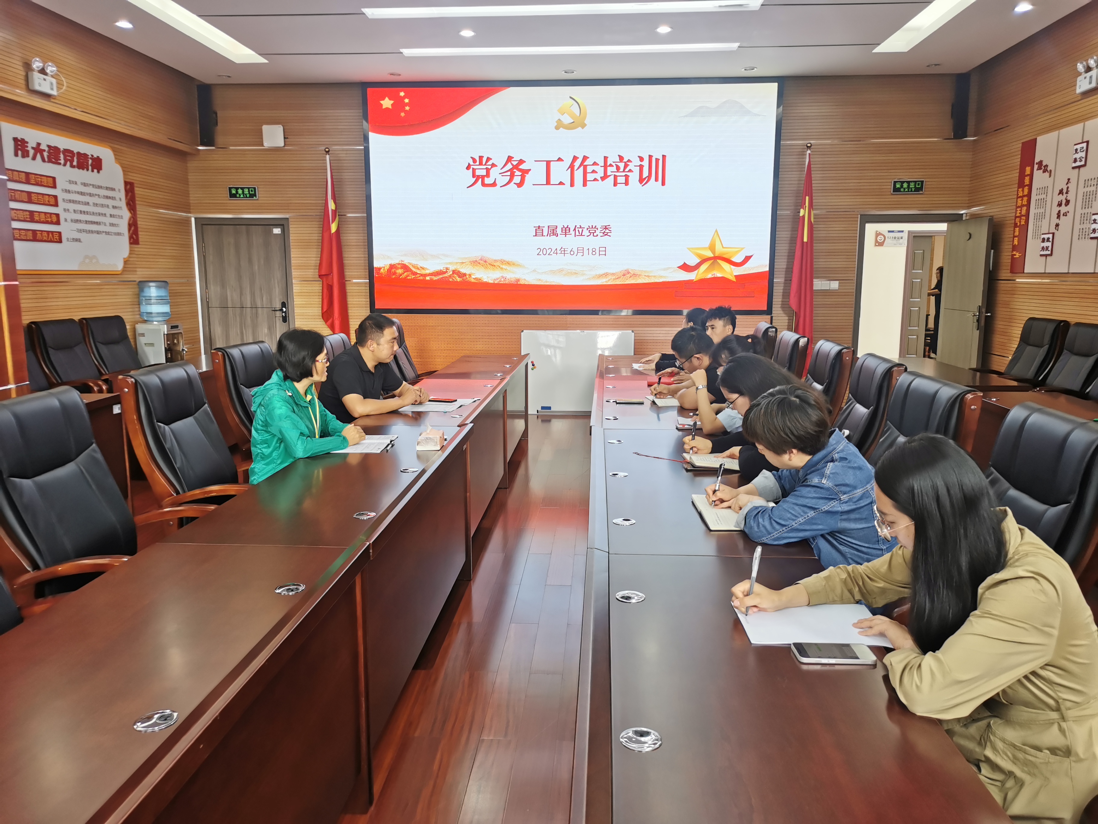 为进一步提高党务工作者业务水平和综合能力,提升基层党建工作水平,夯实党建工作基础,6月18日,直属单位党委开展党务工作业务知识培训交流会。会议由党委书记吴燕主持,学校党委组织部组织科科长李泽飞主讲, 8个党支部负责党务的同志参会。