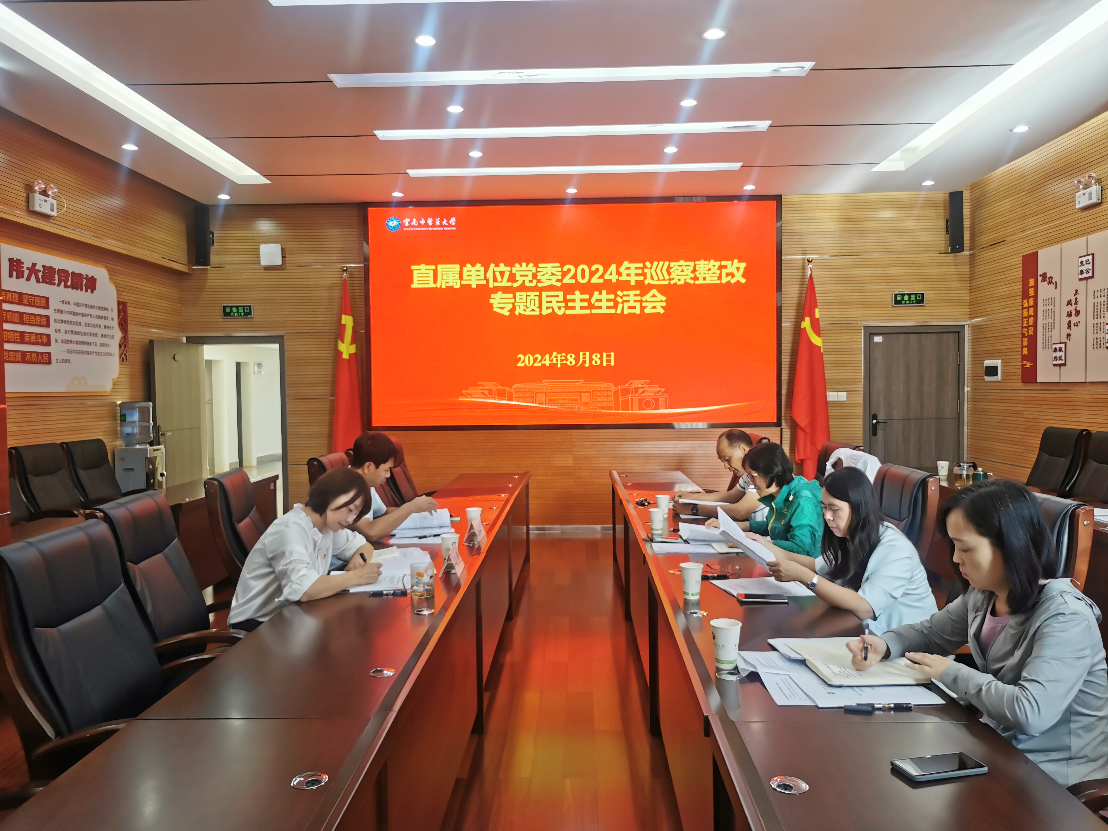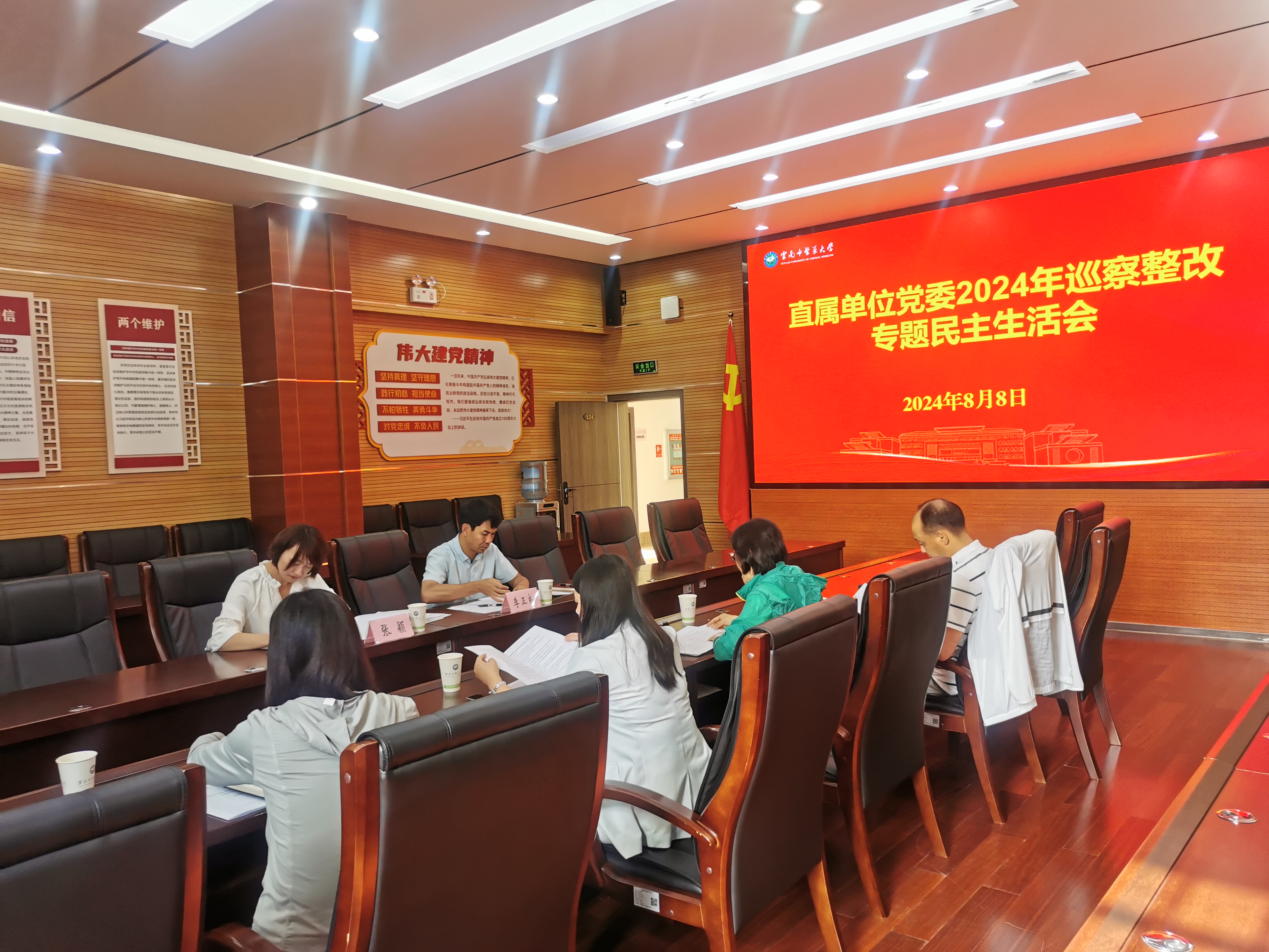 2024年8月8日上午,直属单位党委在崇德楼 124 会议室召开2024年巡察整改专题民主生活会。组织部部长李正良、纪委办主任张颖到会指导,会议由党委书记吴燕主持。