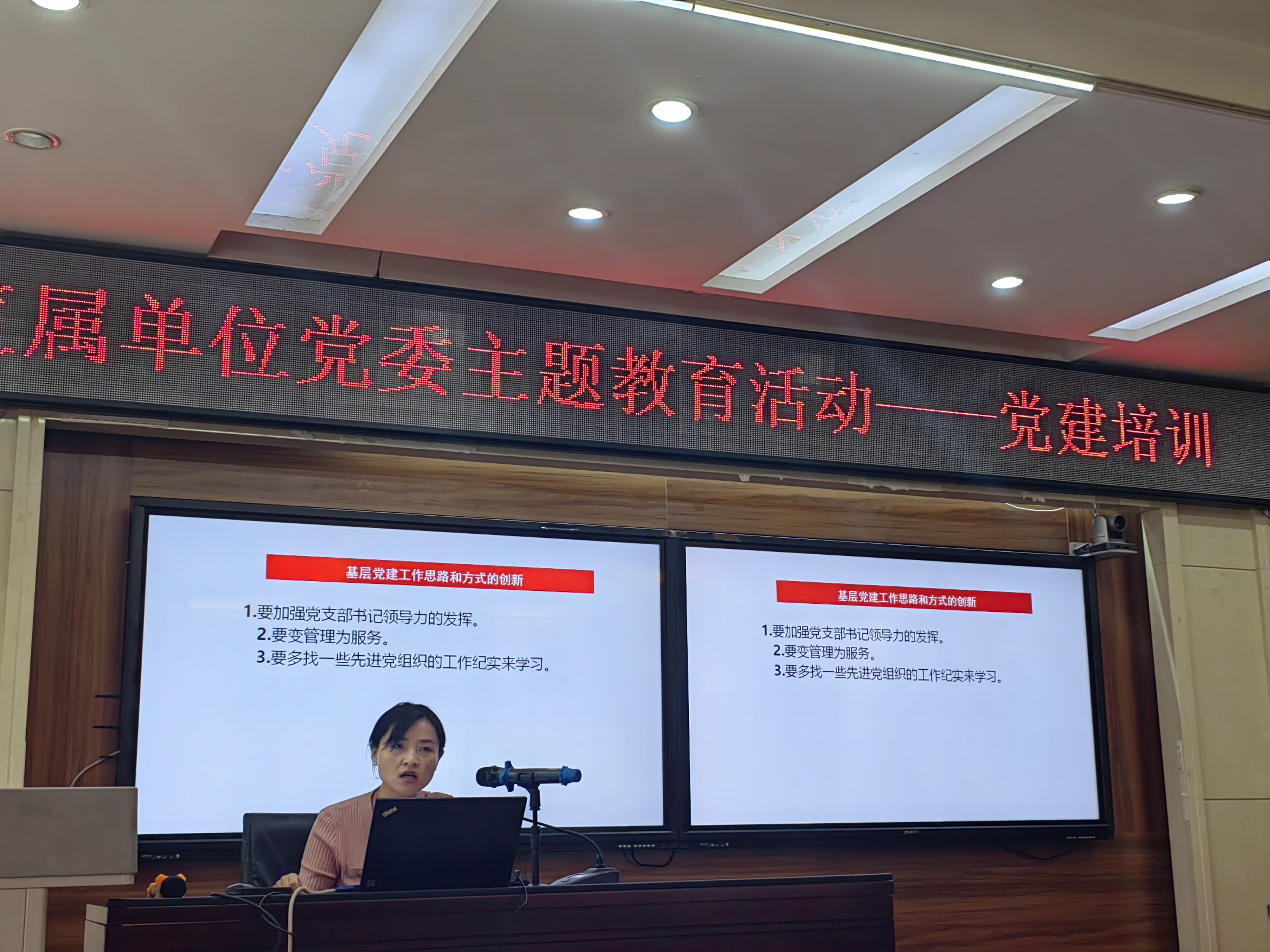其次,聚焦党建与业务双融双促,直属单位党委探索开展集基础党务“标准化”、“信息化”培训和党建经验“分享”为一体的“两化一分享”基层党建思路创新。首先邀请职能部门党委办公室党支部杨莎进行“党支部工作思路创新探索”的讲座。围绕党支部党务台账规范化研究及实践讲解,让各支部掌握台账的分类方法,使台账更加标准化和信息化。围绕基层党建工作的创新路径、“一流党建”示范党支部的思路和举措等方面进行分享。