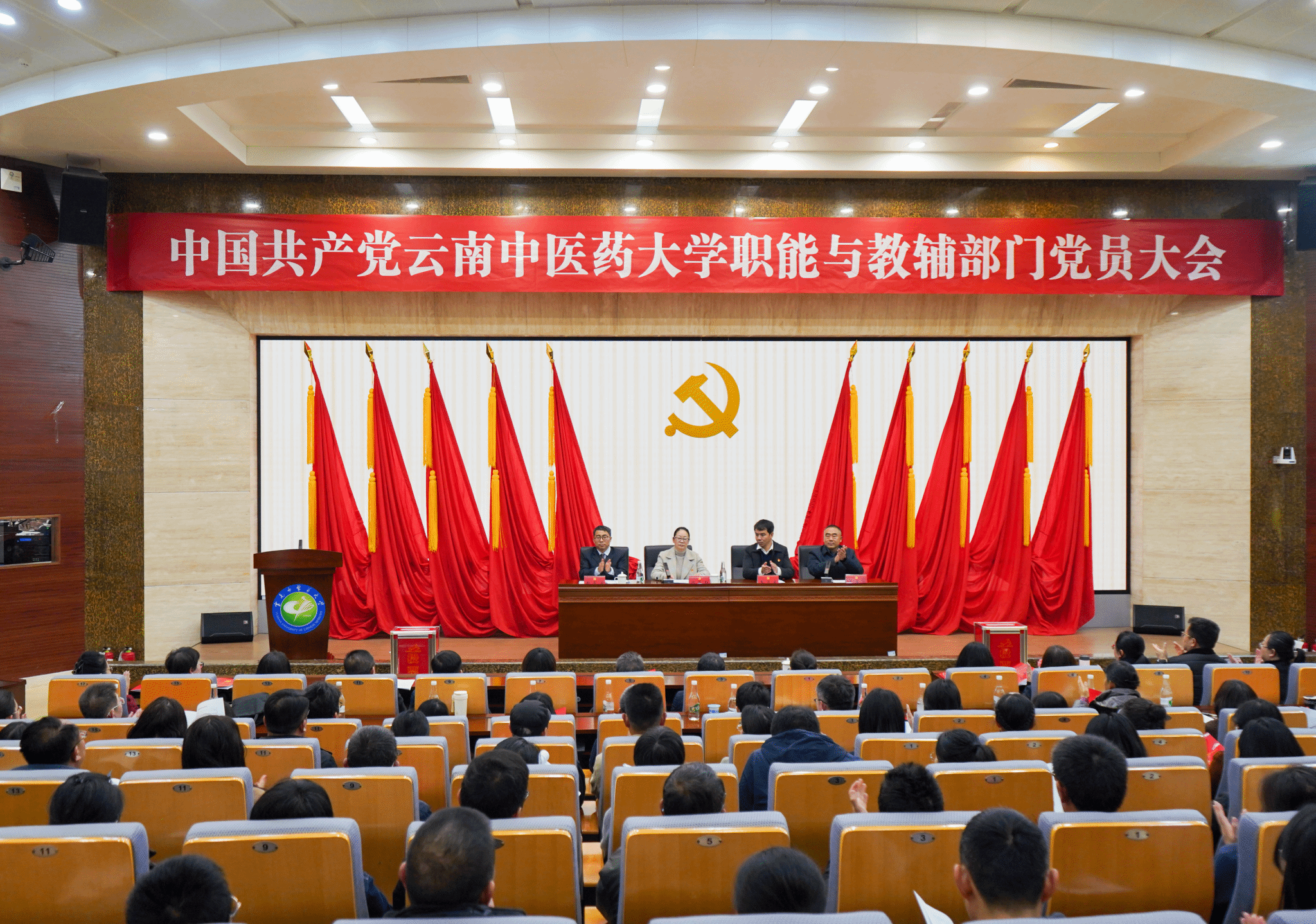 1月13日下午,中国共产党云南中医药大学职能与教辅部门党员大会在呈贡校区翰墨楼报告厅召开,校党委副书记祁苑红、组织部部长李正良到会指导,职能与教辅部门197名教职工党员出席大会,职能与教辅部门省政协委员、非党员领导干部、民主党派、教师代表应邀列席会议。
