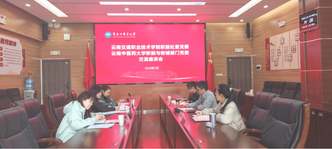 为深化院级党组织党建工作交流,互学互鉴先进经验、凝聚发展共识,3月6日下午,云南交通职业技术学院职能处室党委书记一行到访我校,与职能与教辅部门党委开展座谈交流。双方围绕党委党建工作思路、党组织规范化建设、年度重点任务等工作深入交流,分享思路、交流做法,共促党建质量提升。